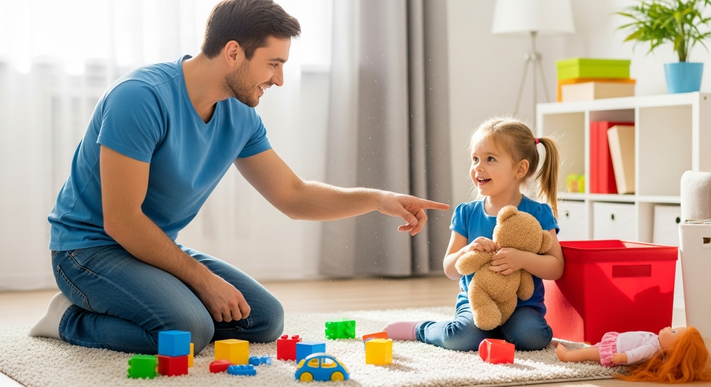 (おもちゃ片付け手伝ってくれる?)