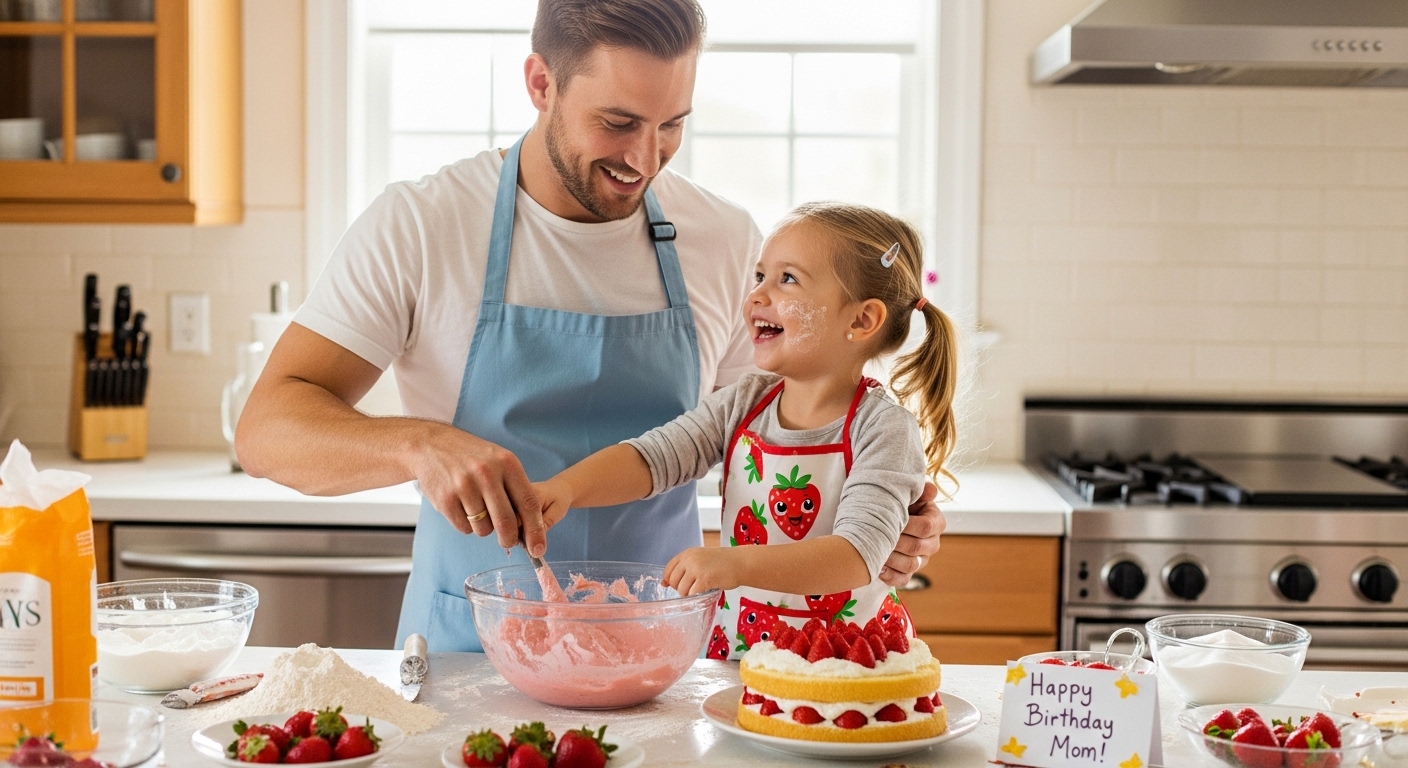 娘と一緒に、いちごたっぷりのバースデーケーキを作りました。