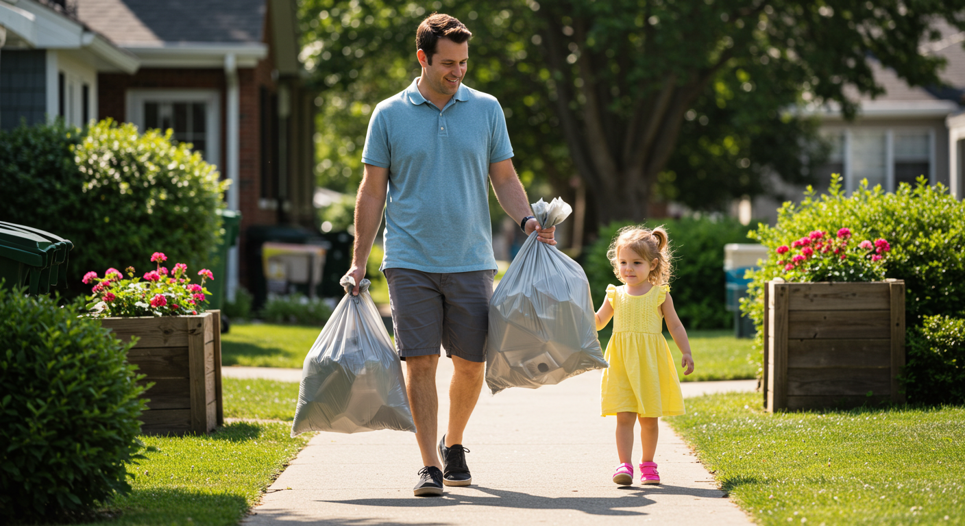 たとえば「ごみ捨て」。一見ただの家事時間ですが、英語フレーズを交えるだけで、子どもとの自然な“生活英語レッスン”に早変わりします。