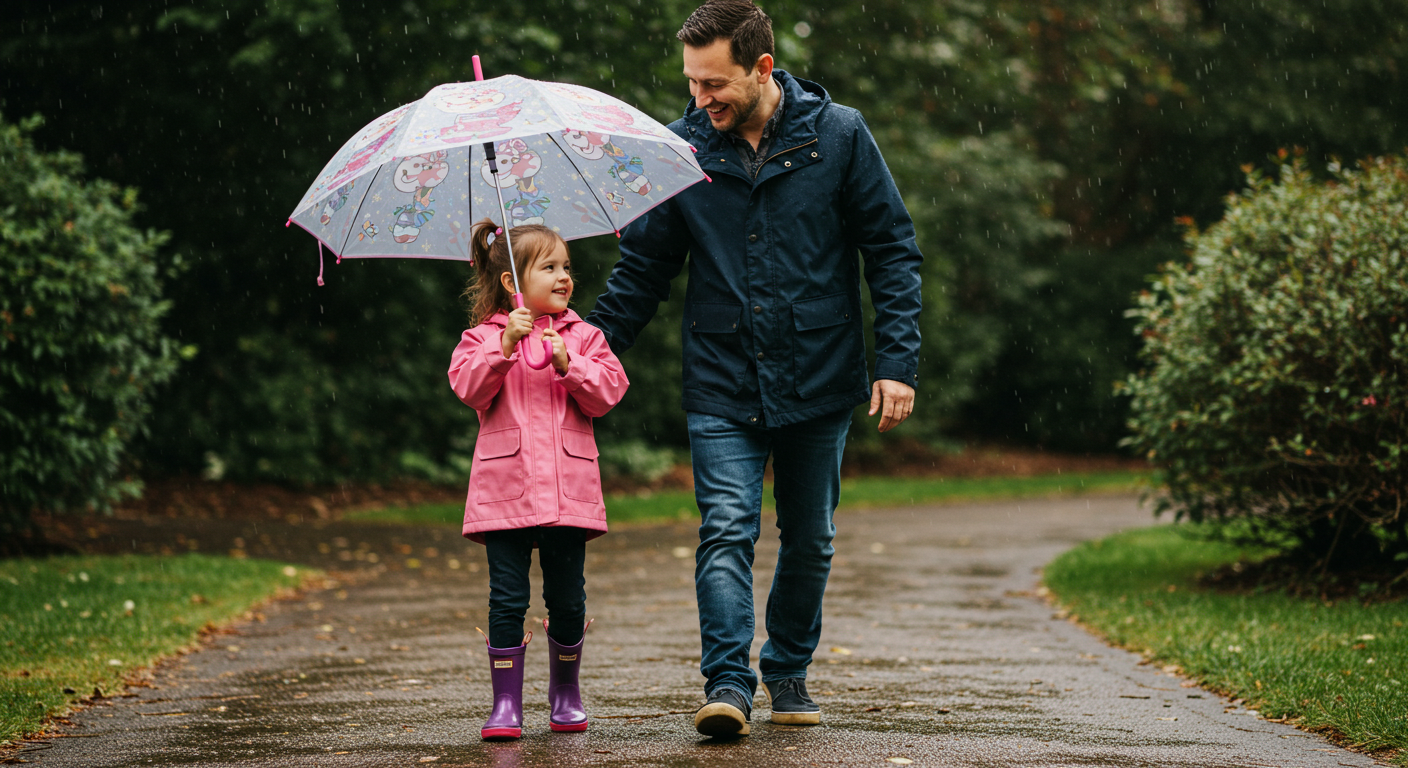 私の3歳の娘は、雨の日にお気に入りの長靴と傘を持ってお出かけするのが大好きです。